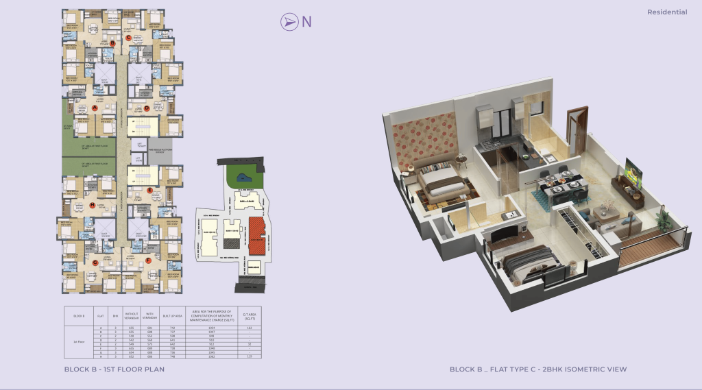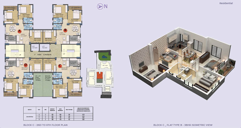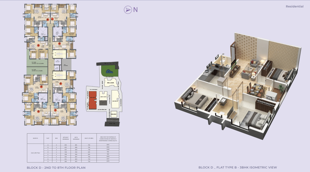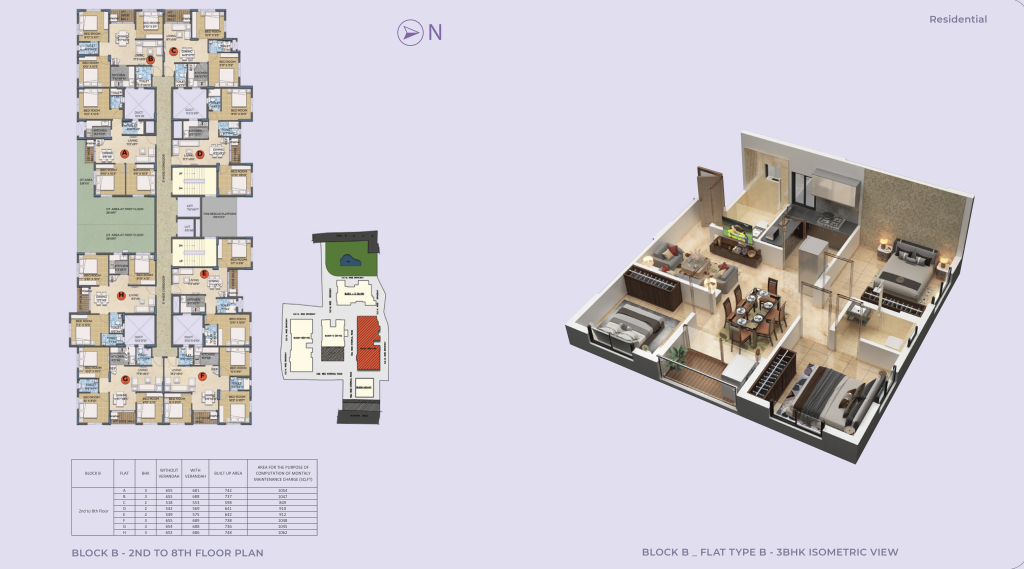 • There are 2 BHK and 3 BHK apartments. Super built-up area ranges approximately from 902 sqft to 1108 sqft (depending on configuration)